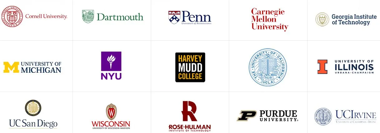 A glorious track record. Our students have waltzed into places like Cornell, Dartmouth, UPenn, Georgia Tech, CMU, Harvey Mudd, U-Mich, UCLA, NYU, UCSD, UIUC, Wisconsin-Madison, Rose Hulman, Purdue, UC Irvine, and UCL. Casual name-drop, no big deal.